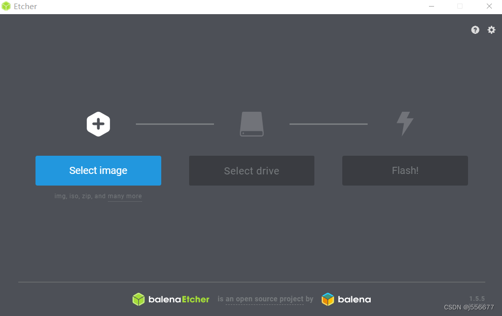 ②点开Etcher,点击Select image选择刚下载的系统镜像(镜像文件格式为.zip),再从Select drive中选择要烧录的SD卡,最后选择Flash进行写入。