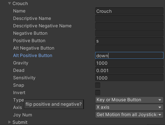 蹲下按哪个按钮,unity里面是没有预制的,所以我们要自己设置