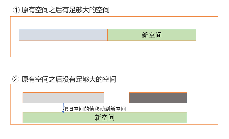 ①原有空间之后有足够大的空间。此时直接在原有内存之后直接追加空间,原来空间的数据不发生变化