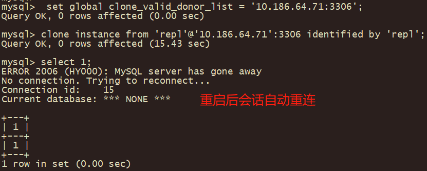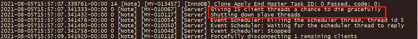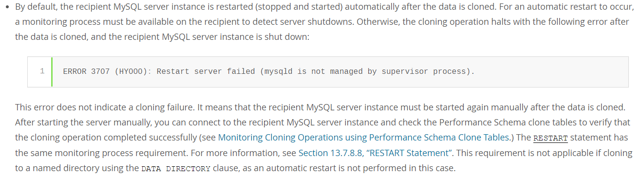 意思说是当 recipient server 在 clone 数据拉取完成后会进行重启操作,前提是监控进程可用。而当出现相关报错时也不用担心,并不能说明 clone 失败了,随后只需要手动重启就可以了。