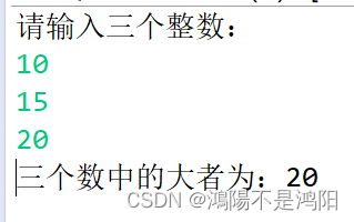 3.这是一个if语句。这里判断三个数中最大的数是需要用户输入并判断的;判断三个数中最小的数是在程序中定义的,并按照定义的数值进行输出;