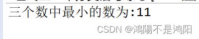 package com.edu.s2;public class 单分支语句练习 {public static void main(String[] args) {// TODO Auto-generated method stubint a=22,b=11,c=55;if(a>b){a=b;if(a>c)a=c;System.out.println("三个数中最小的数为:"+a);}}}