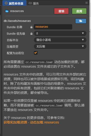 然后你需要在你的资源文件夹resources属性检查器里设置 ( 注意资源文件必须为 resources)