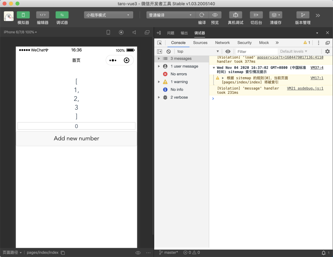 编译成功之后,通过微信开发者工具打开 dist 目录,浏览项目,如下所示: