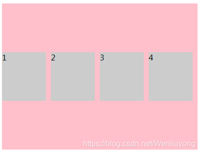space-between:平均分配剩余空间,两端不留间隔: