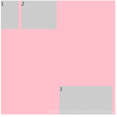 flex-end:在右边或者下边,如图,设置子物体3为flex-end: