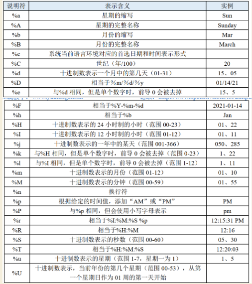 被替换为 struct tm 结构体对象所指时间的相应值,这些特殊格式说明符如下: