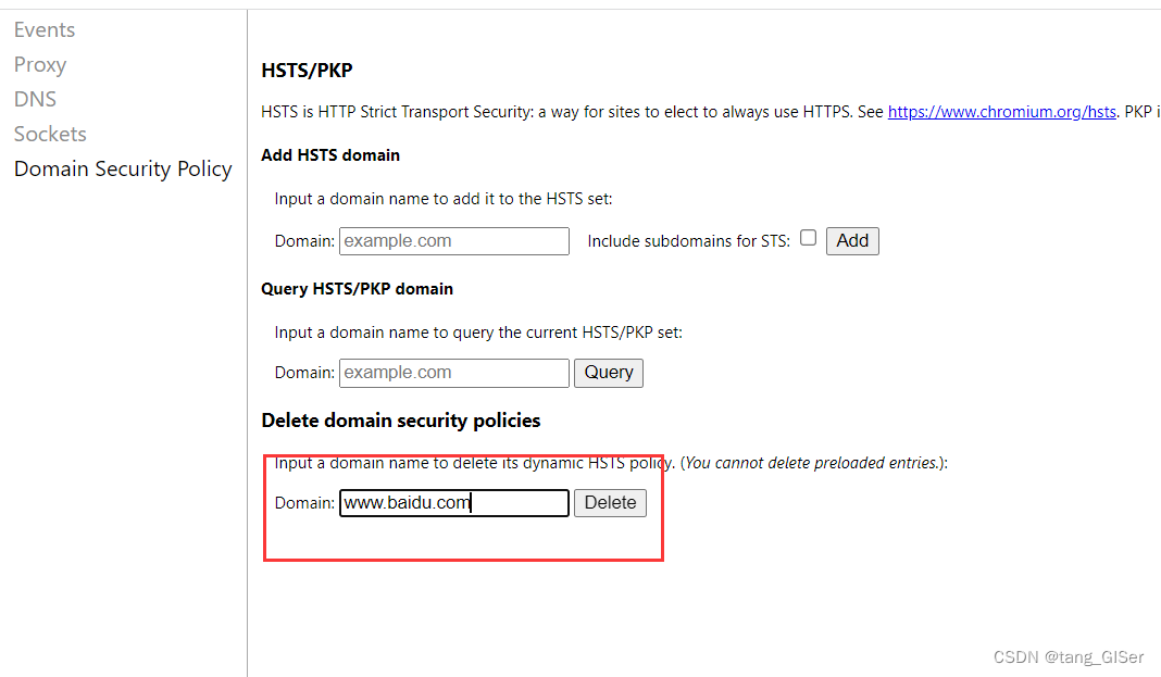- 在浏览器地址栏输入这个网址:chrome://net-internals/#hsts