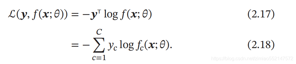 交叉熵损失函数 (Cross-Entropy Loss Function)一般用于 分类问题 . 假设样本的标签 𝑦 ∈ {1, ⋯ , 𝐶} 为离散的类别, 模型 𝑓(𝒙; 𝜃) ∈ [0, 1]𝐶 的输出为类别标签的条件概率分布,即