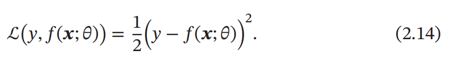 平方损失函数 ( Quadratic Loss Function ) 经常用在预测标签𝑦 为实数值的任务中 , 定义为