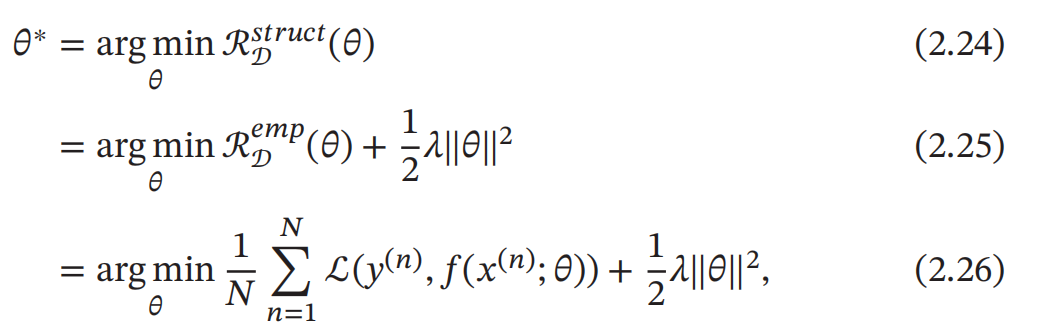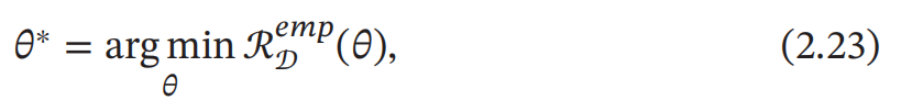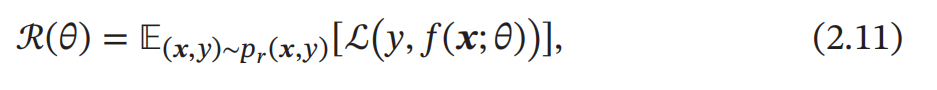 一个好的模型 𝑓(𝒙; 𝜃) 应当有一个比较小的期望错误,但由于不知道真实的数据分布和映射函数 ,实际上无法计算其期望风险 ℛ(𝜃).给定一个训练集