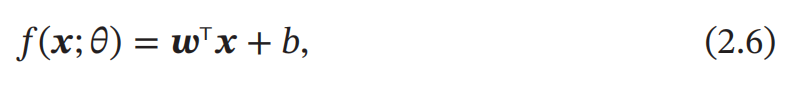 其中参数𝜃 包含了权重向量𝒘和偏置𝑏.对于分类问题,一般为广义线性函数.