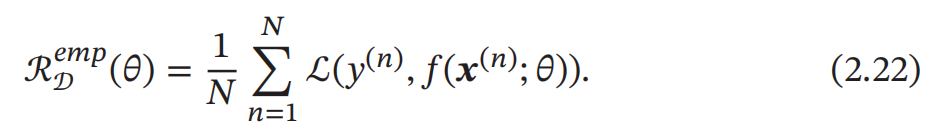 我们可以计算的是 经验风险 ( Empirical Risk),即在训练集上 的平均损失: 经 验 风 险 也 称 为 经 验错误 (Empirical Error).