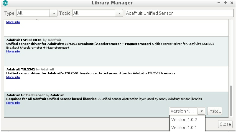 在库管理器中对 Adafruit Unified Sensor 进行搜索:
