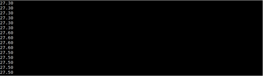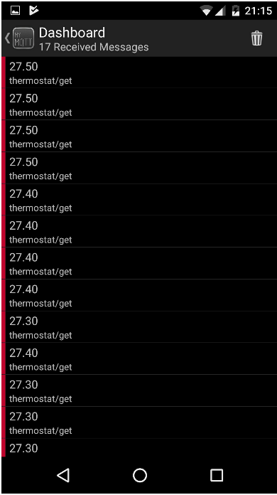 如果您订阅 thermostat/get 主题,您将每隔两秒钟获得房间内的当前温度,如以下屏幕截图所示: