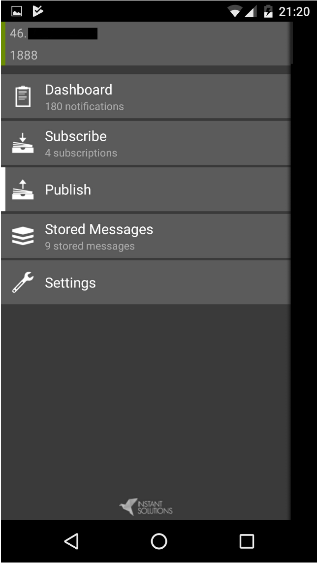 对于 Android 手机,有一个名为 MyMQTT 的应用程序,如果您的代理可以通过互联网访问,您可以在不在家时设置所需的温度;你也可以看到你家当前的温度。此 MyMQTT 应用程序的主菜单如下: