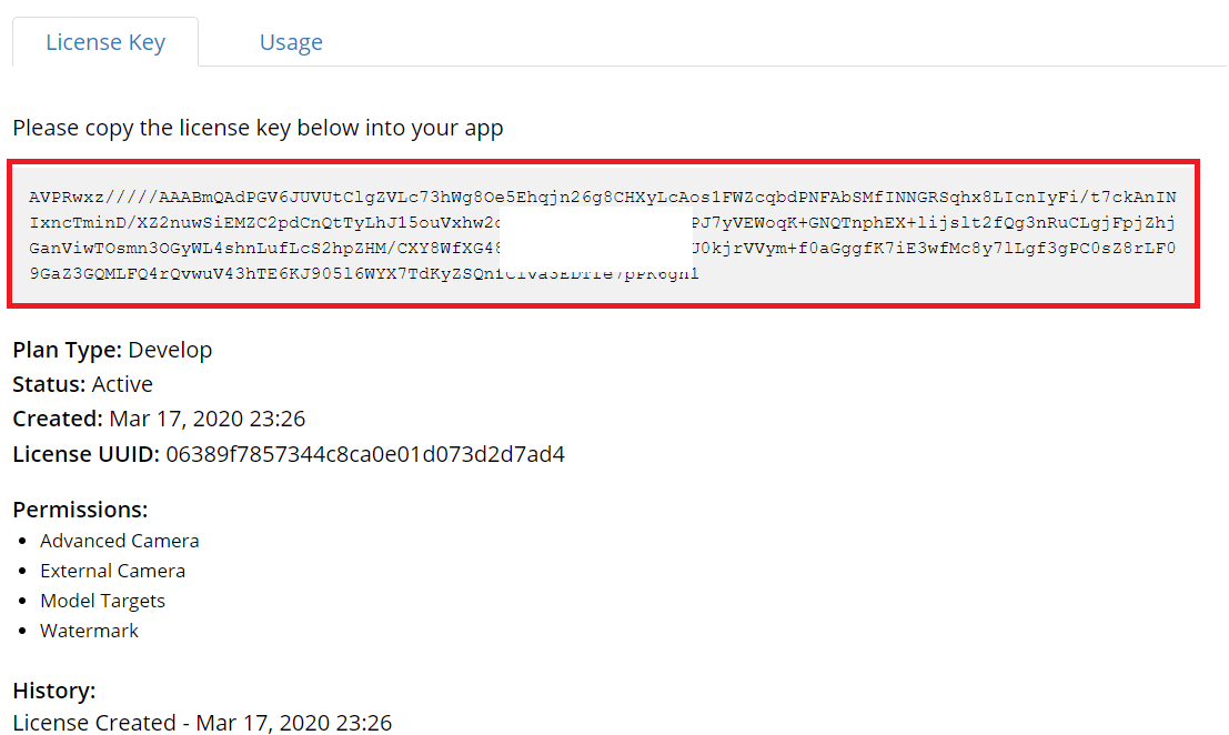 - 打开配置(在ARCamera的Insepeter面板中)检查许可证