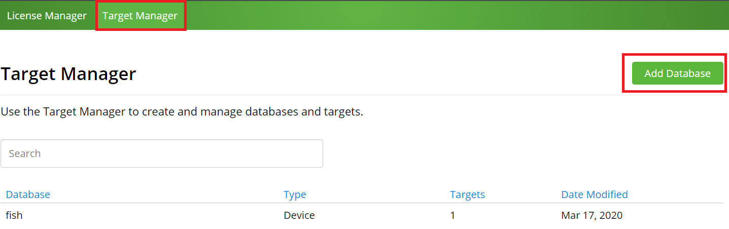 另一个需要在vuforia做的操作是添加数据库,也就是用来识别的目标,切换到Target Manager视图,点击Add Database:
