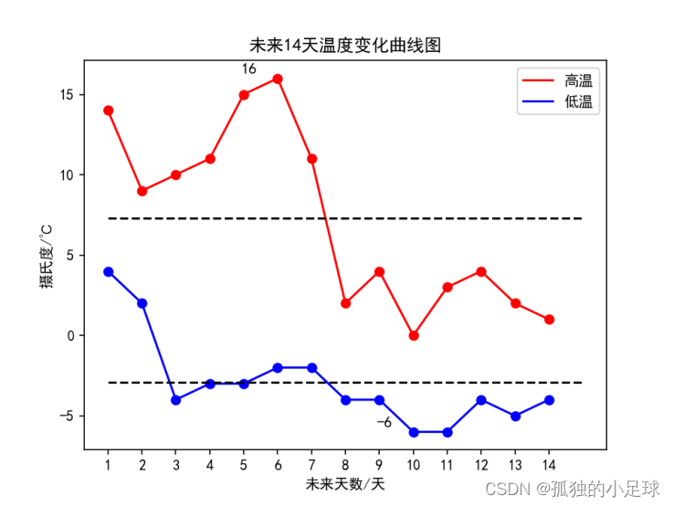 plt.text(tem_min_date + 0.15, tem_min + 0.15, str(tem_min), ha='center', va='bottom', fontsize=10.5)