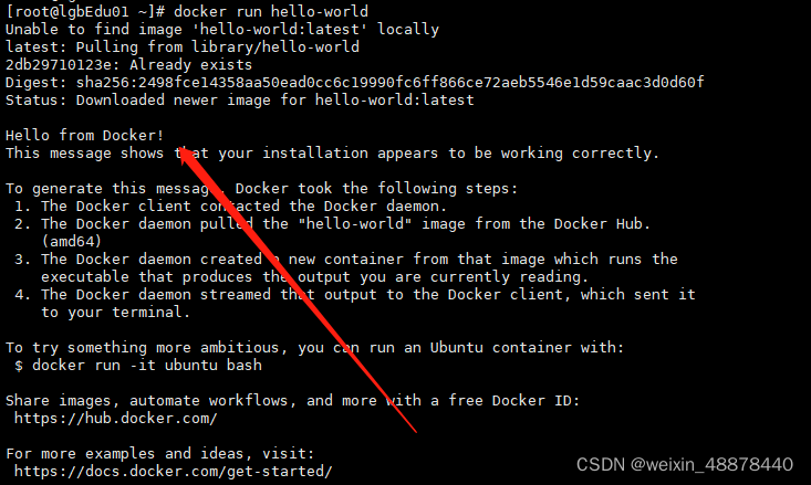1.5 通过运行 hello-world 验证 docker-ce 是否已正确安装