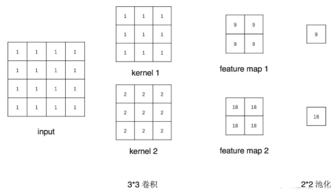feature maps shape: torch.Size([1, 2, 2, 2]) output value: tensor([[[[ 9., 9.], [ 9., 9.]],