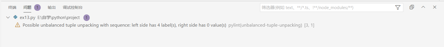 翻译下就是:元组在按顺序解包时可能存在不平衡:左侧有4个,右侧有0个。