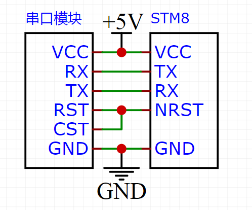 这里我们使用串口模块来连接MCU,这里需要注意,串口模块需要引出RST和CST引脚。