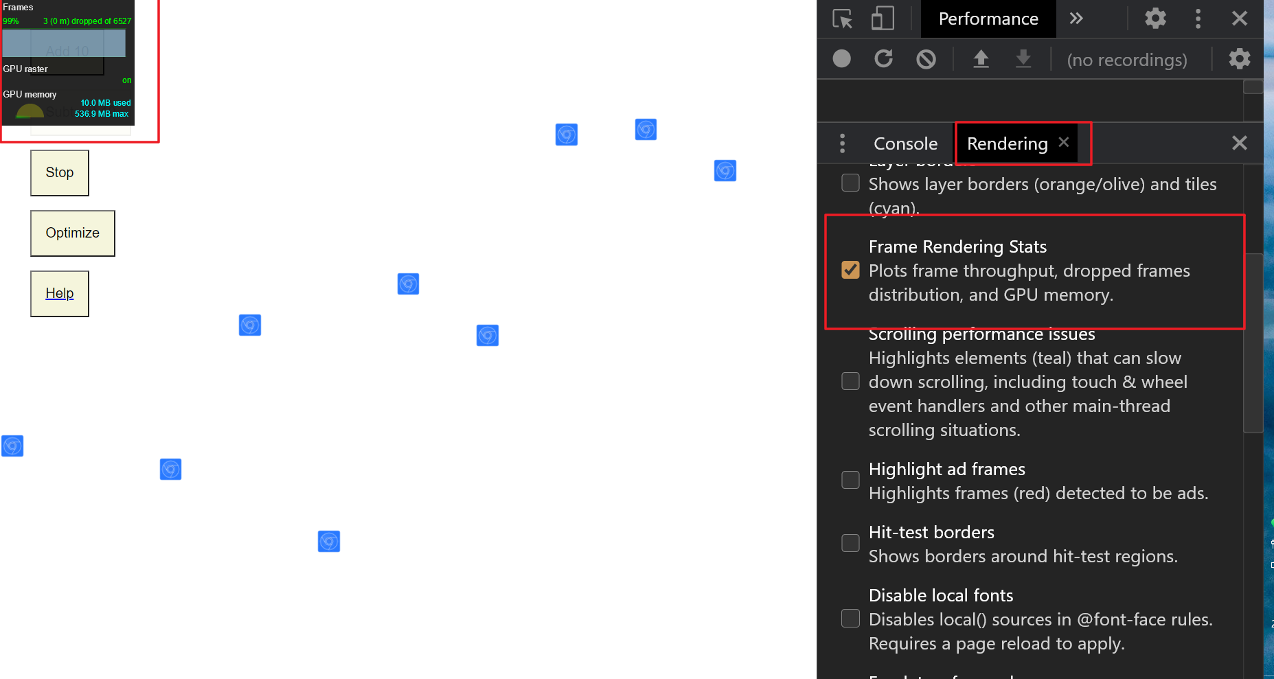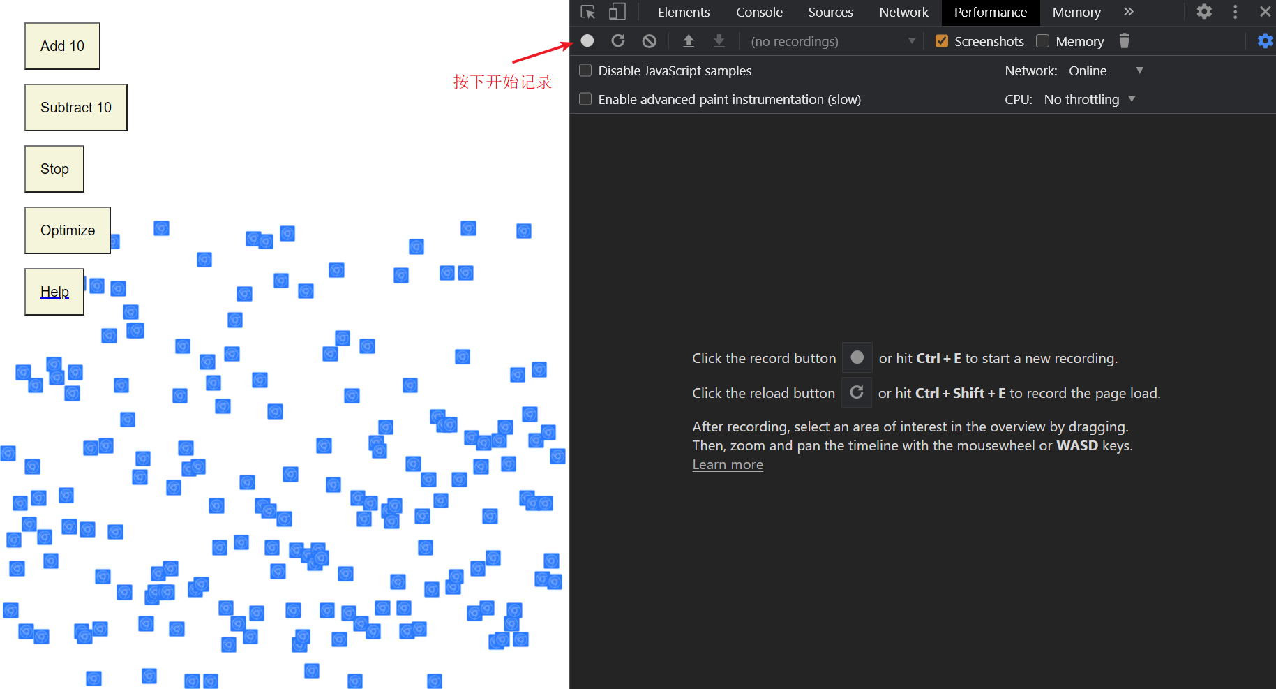 在记录过程中,可以切换一下 optimize 按钮,感受一下优化和未优化的效果。