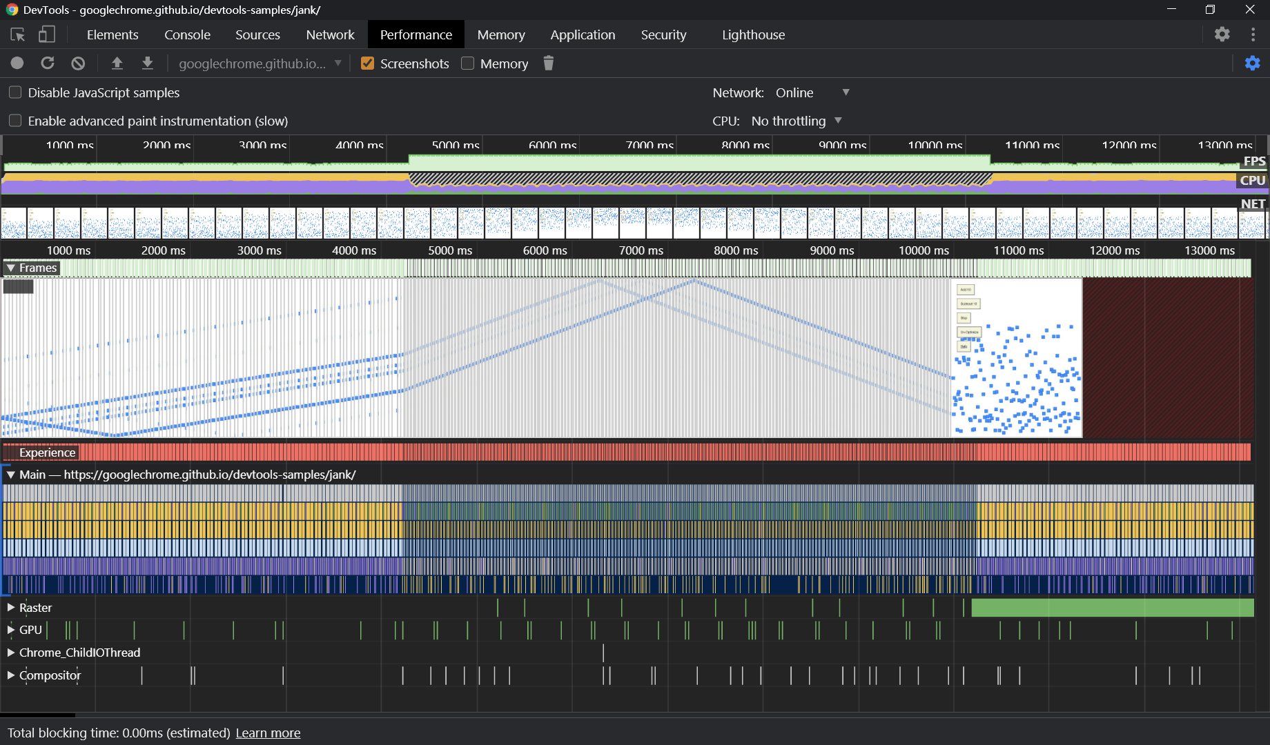 浏览器是准备好了,总得来个项目才能实战把。google 非常贴心的准备了一个 demo https://googlechrome.github.io/devtools-samples/jank/