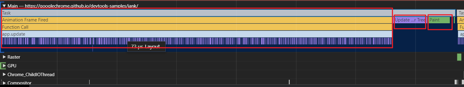 当然还有 Raster 和 GPU、Chrome_ChildOthread、Compostirot 没说,不过那些貌似影响不大了~。如果还想深究推荐一篇文章:详解谷歌浏览器 performance 选项卡@杏子_1024
