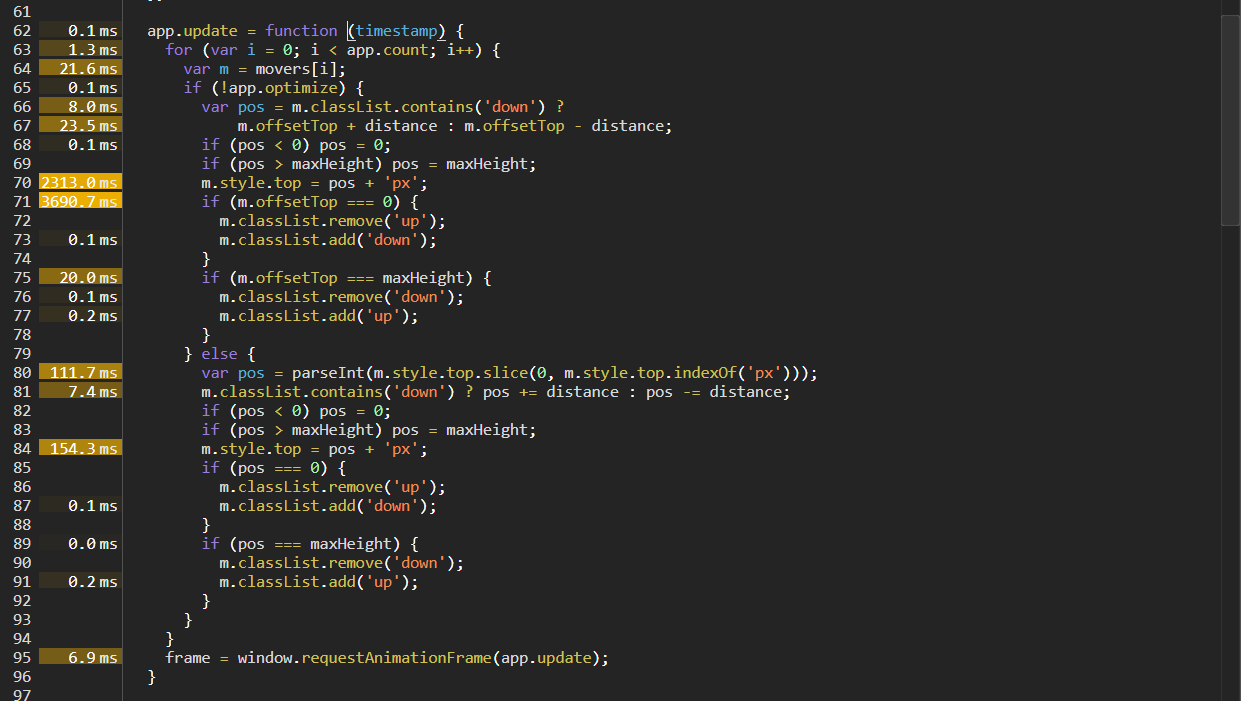 然后这个 demo 优化的部分是从65行开始的:app.optimize 为 true 代表执行优化后的代码。