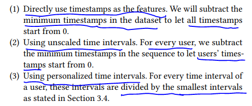 目前,马尔科夫链以及最近的循环神经网络和自注意力由于能够捕捉到序列行为的动力学而得到广泛应用。但是,这些模型中的大部分暗含了简单的假设,即将行为历史看做有序序列,不关心每个行为之间的时间间隔,这些模型只对时间的序列进行建模,不对实际的时间戳进行建模。
