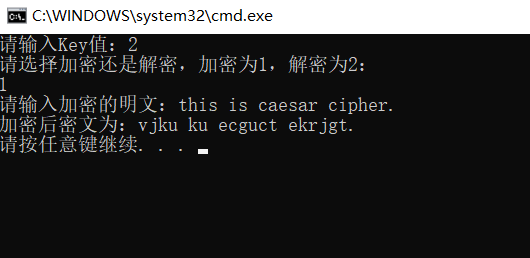 2.根据凯撒加密解密算法写出对应的程序代码,最后写出主函数对其进行调用。