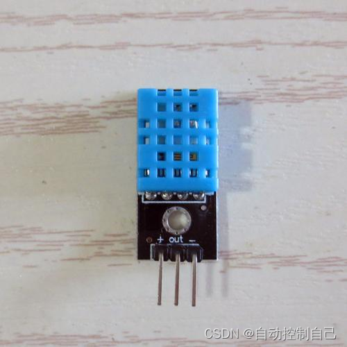 DHT11 是一种数字温湿度传感器。 它的工作原理是基于一个温湿度敏感元件和一个由微处理器实现的数字信号输出。 DHT11 传感器使用单总线数据通信协议,并能够提供精确的温度和湿度测量。 DHT11 传感器的工作范围为 0-50 摄氏度的温度和 20-90%相对湿度。 它具有低功耗、 高精度和稳定性的特点。 传感器内部有一个射频传感器, 能够快速响应温度和湿度的变化, 并将测量结果通过数字信号输出。 它的低成本和易于使用在我们本项目中非常适用。 下图为 DTH11 的实物图: