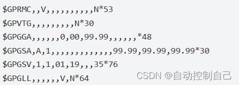 我们 neo-6m 模块在上电瞬间会先定位, 由于位置信息会受到卫星信号强弱的影响, 因此从 GPS 模块里面接收到的信息不一定就是有效的位置信息。 如果定位失败, 模块会返回类似下图这样的信息。