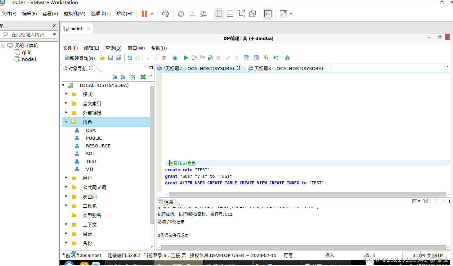 4.语句创建TEST角色:授予它修改用户、创建表格、创建视图和创建索引等权利。