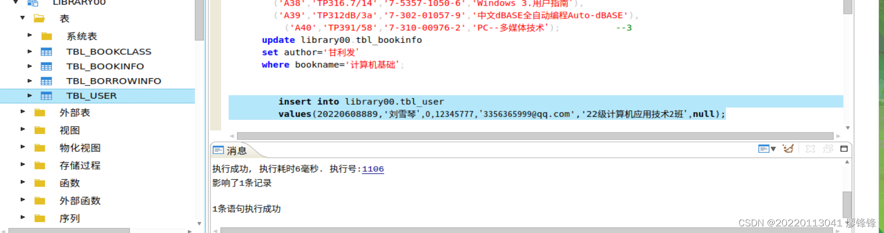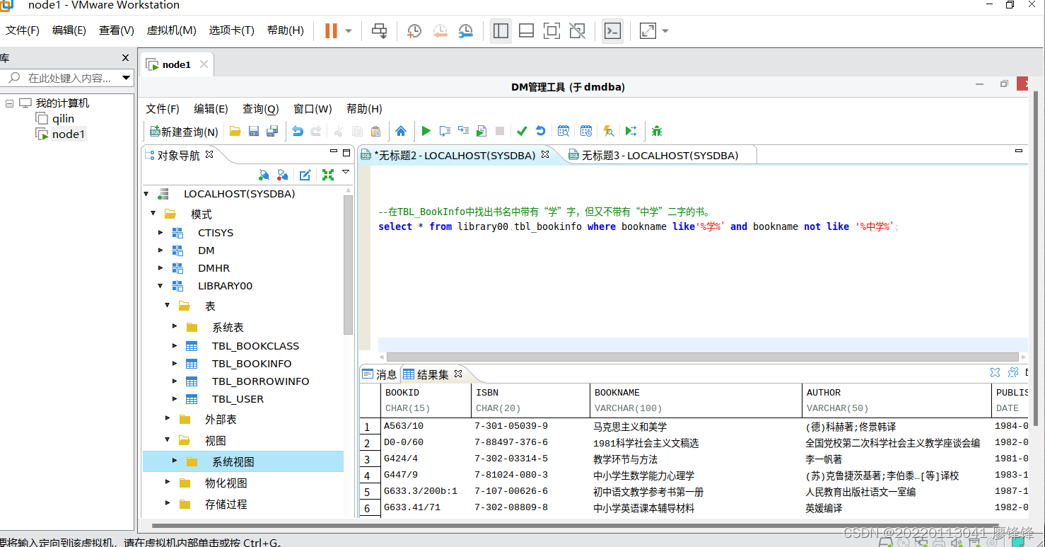 经过一学期的学习,收获颇多,不单单是上面的操作,还有条件查询、内连接、更新、备份等等功能。第一次安装达梦数据库的时候,挺艰难的,后面再用指令打开图形化界面等一系列操作,觉得前面的都是小问题。学习达梦数据库是一个很有意义的过程,不仅能够让我们更深入地了解国产数据库管理系统的设计和实现,还能够了解国内数据库市场的现状和未来发展趋势。在使用达梦数据库时,我们可以感受到它快速、稳定、安全、易用的特点,这对于企业级应用来说非常重要。掌握好达梦数据库的知识,对自己今后的学习或是工作都非常有帮助,但是由于初次接触达梦数据库,对于很多方面还仅仅是表面功夫,还需要继续学习,并不断提升自己的专业能力,以应对不断变化的商业需求和挑战。