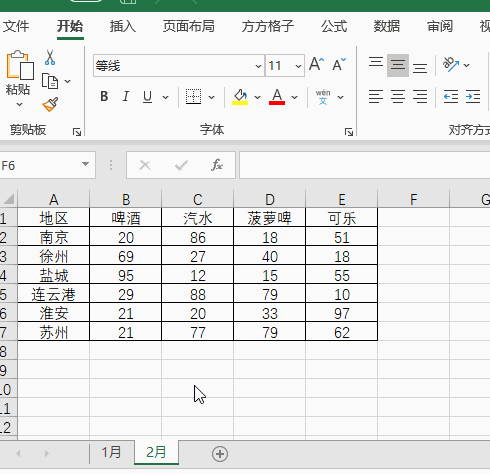 1.如下图分别是两个地区产品销售工作簿,现在我们想要快速统计出各个地区两月的产品销售情况。
