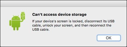 另外,如果您的设备已锁定,则需要先对其进行解锁,然后重新启动Android File Transfer,然后才能访问其文件和文件夹。