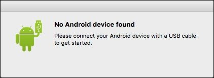 If you try to start Android File Transfer without your Android phone or tablet plugged into your Mac, you will receive the following message.