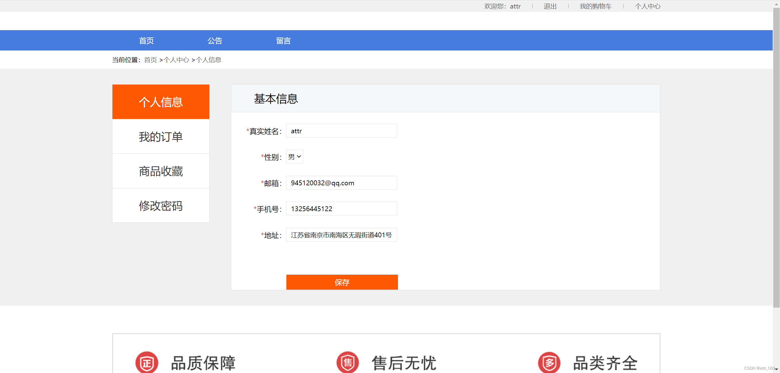 (5) 提交订单:客户可在购物车中提交订单并录入相关的个人信息后确认订单。