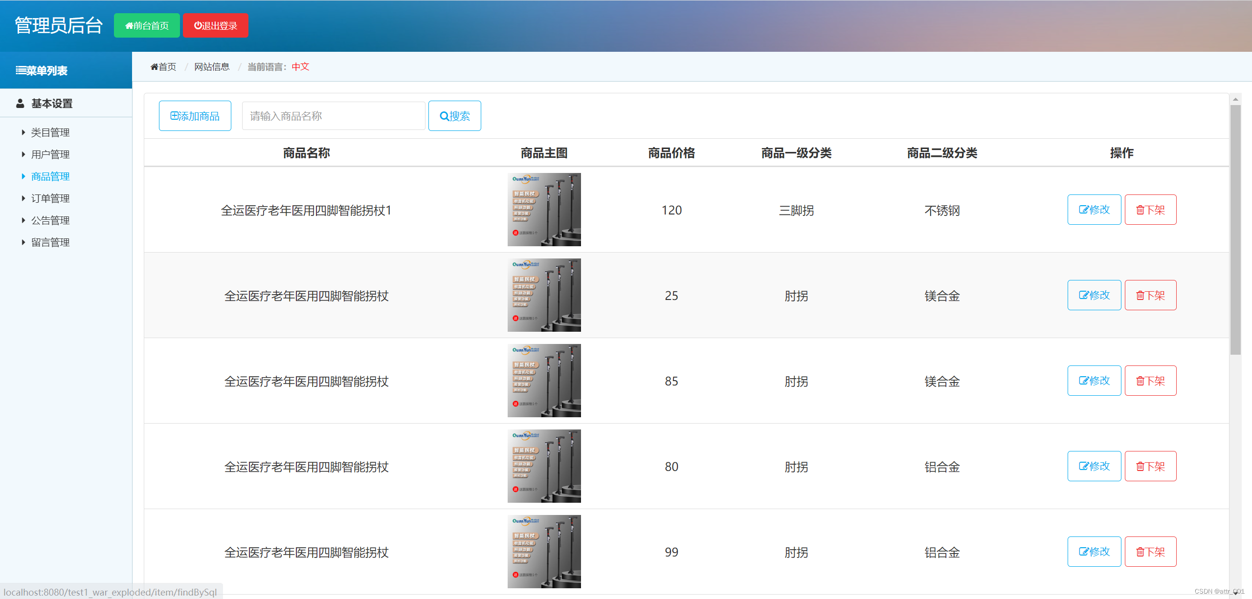 (3) 商品管理:系统管理员可对系统内所有的商品进行管理,包括商品信息的修改或商品下架等。