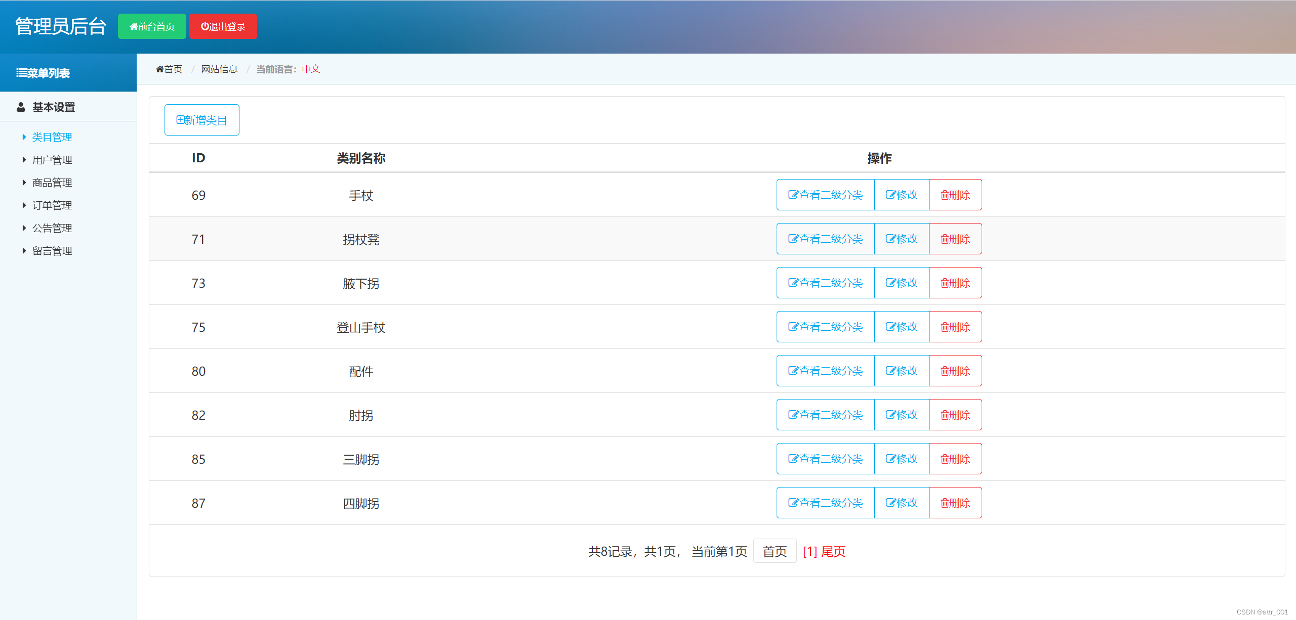 (2) 商品类别管理:系统管理员在后台可以对商品进行分类管理,有商品一级、二级管理。