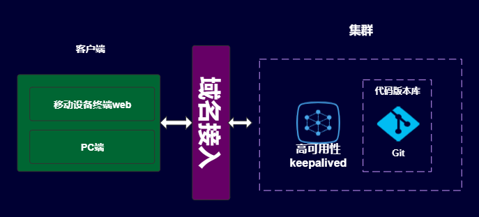 通过域名访问代码仓库(域名格式建议:codeclub.tryrus.com),gitlab使用keepalived做高可用性,使用drbd 做数据同步。