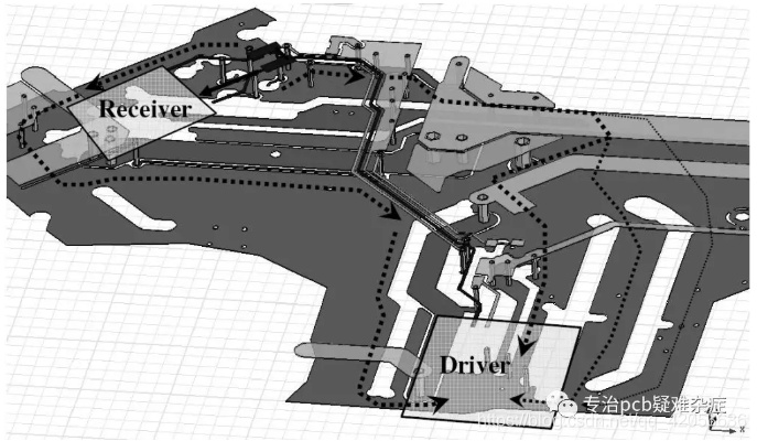 我们知道一个事实:电流是电荷的流动,电流只能在闭合的回路中流动;接着我们了解下信号回流路径,即return current。信号流向是从驱动器沿PCB传输线到负载,再由负载沿着地或电源通过最短路径返回驱动器端。每一个信号都有一个回流路径来构成回路。电路中的信号我们可以归纳为高频信号和低频信号,那么他们的回流路径是不同的:低频信号回流选择阻抗最低路径,高频信号回流选择感抗最低的路径。