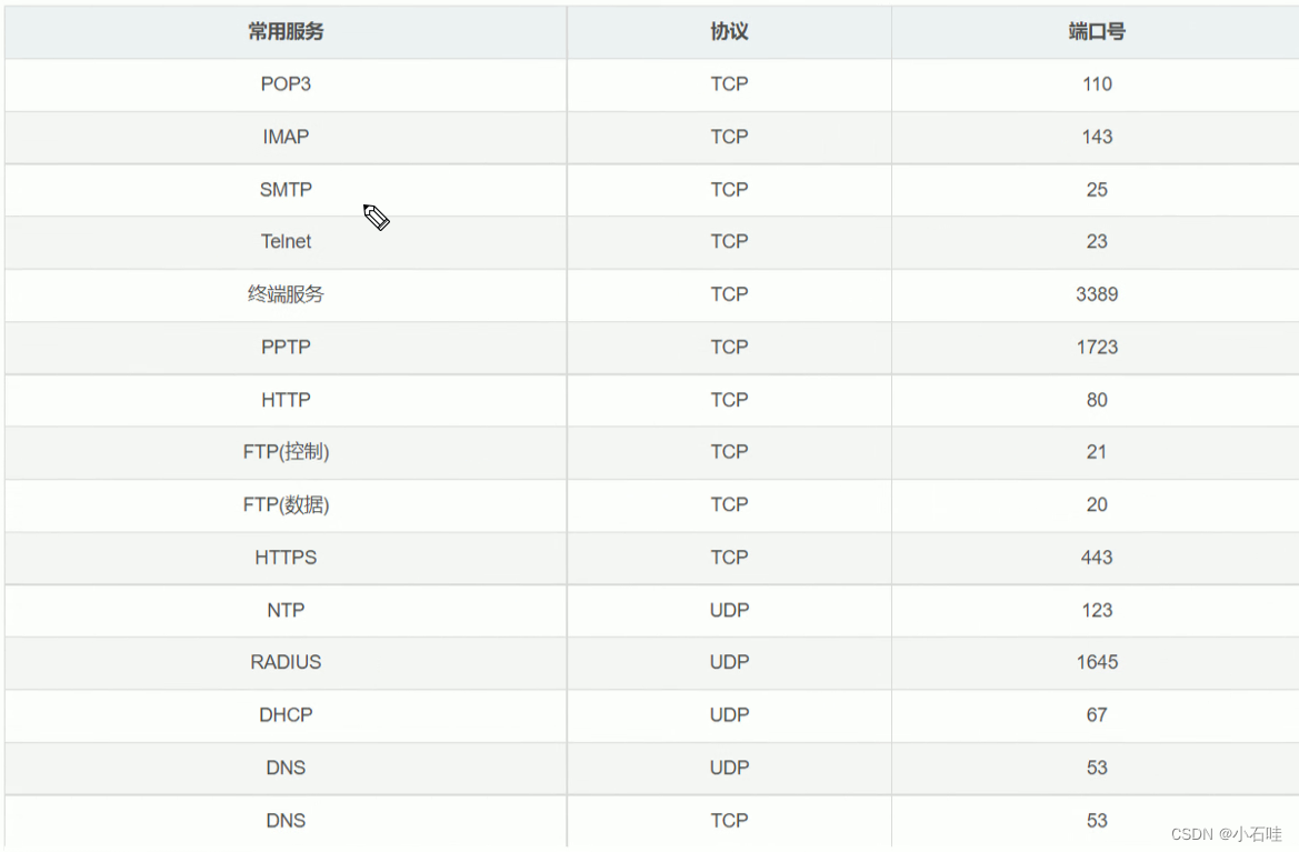 端口号:二进制构成16位二进制构成)用客户端区分进程 服务端区分服务(例如:QQ对QQ,微信对微信)0-65535 其中1-1023为注明端口,用于标记固定的服务