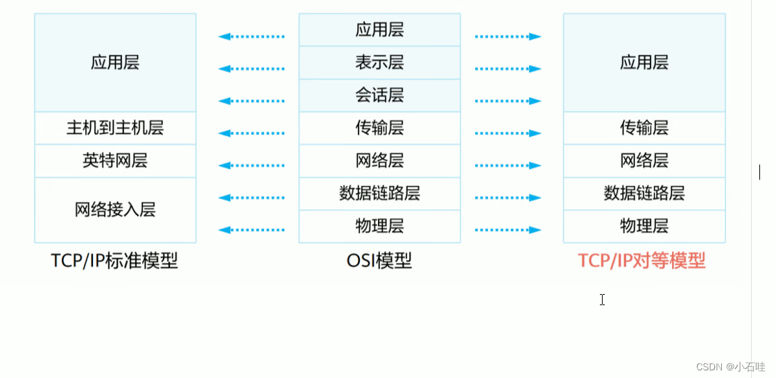 TCP/IP标注模型和TCP/IP对等模型的区别:只是由于角度不同因此分发也发生了变化