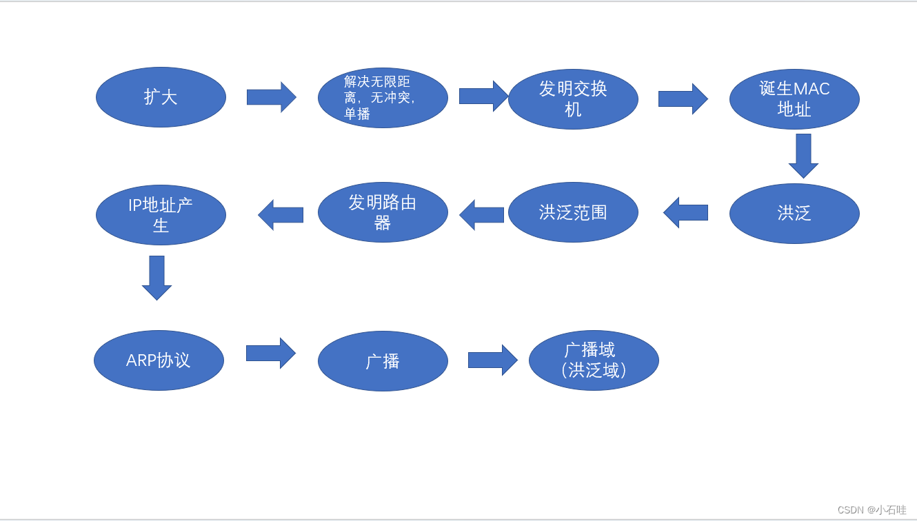 原理:当a要给b发消息时,消息中会配有----第二层a的MAC和路由器的网关同时还有第一层a的IP和b的IP,a首先会将消息发送给交换机,当交换机识辨到第二层中的网关时,会将信息发送给路由器。路由器收到交换机转发消息,他首先会读取到信息中第二层的MAC ,然后又会读取到第一层中b的IP。因此路由器会重新包装第二层并赋予信息,广播域2所对应的网关和b的MAC。最终b会收到a的消息;b将用相同的方法给a回信。