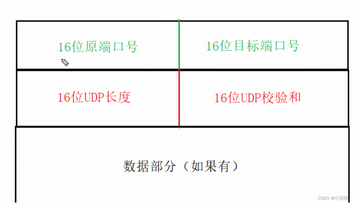 非面向连接的不可靠传输协议 --- 仅完成传输层的基本工作-- 分段、端口号