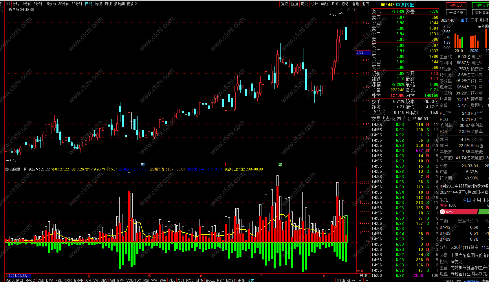 【双向量】实用双向量极品工具指标、换手率、流通盘、成交额等通用看股指标